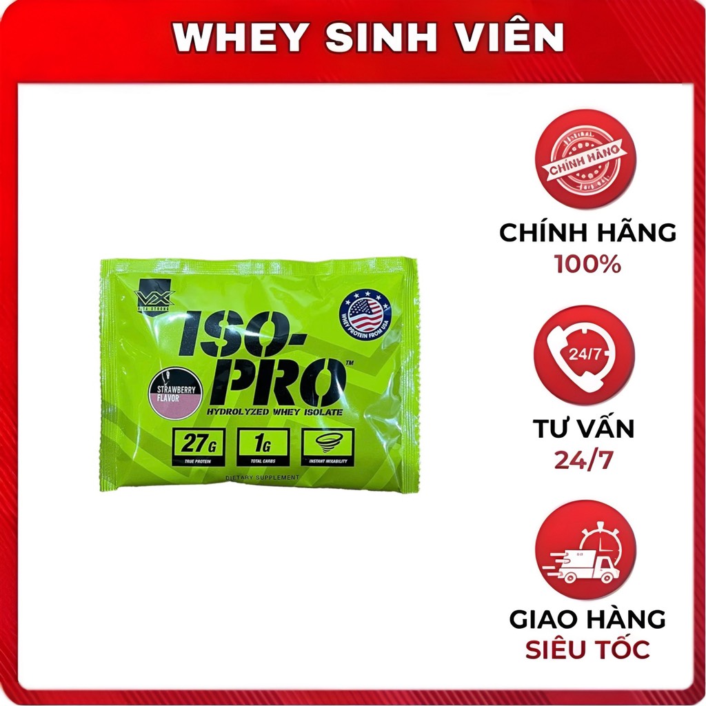 Sample ISO Pro được đánh giá là một trong những sản phẩm Whey Protein tinh khiết nhất hiện nay. ISO PRO 100% Hydrolyzed Whey Protein và không chứa đường lactose, gluten, chất béo bão hòa. Đây là một trong số ít sản phẩm áp dụng công nghệ tiên tiến nhất, mang tới thành phần 100% Whey Hydrolyzed thuỷ phân hấp thu vượt trội với: