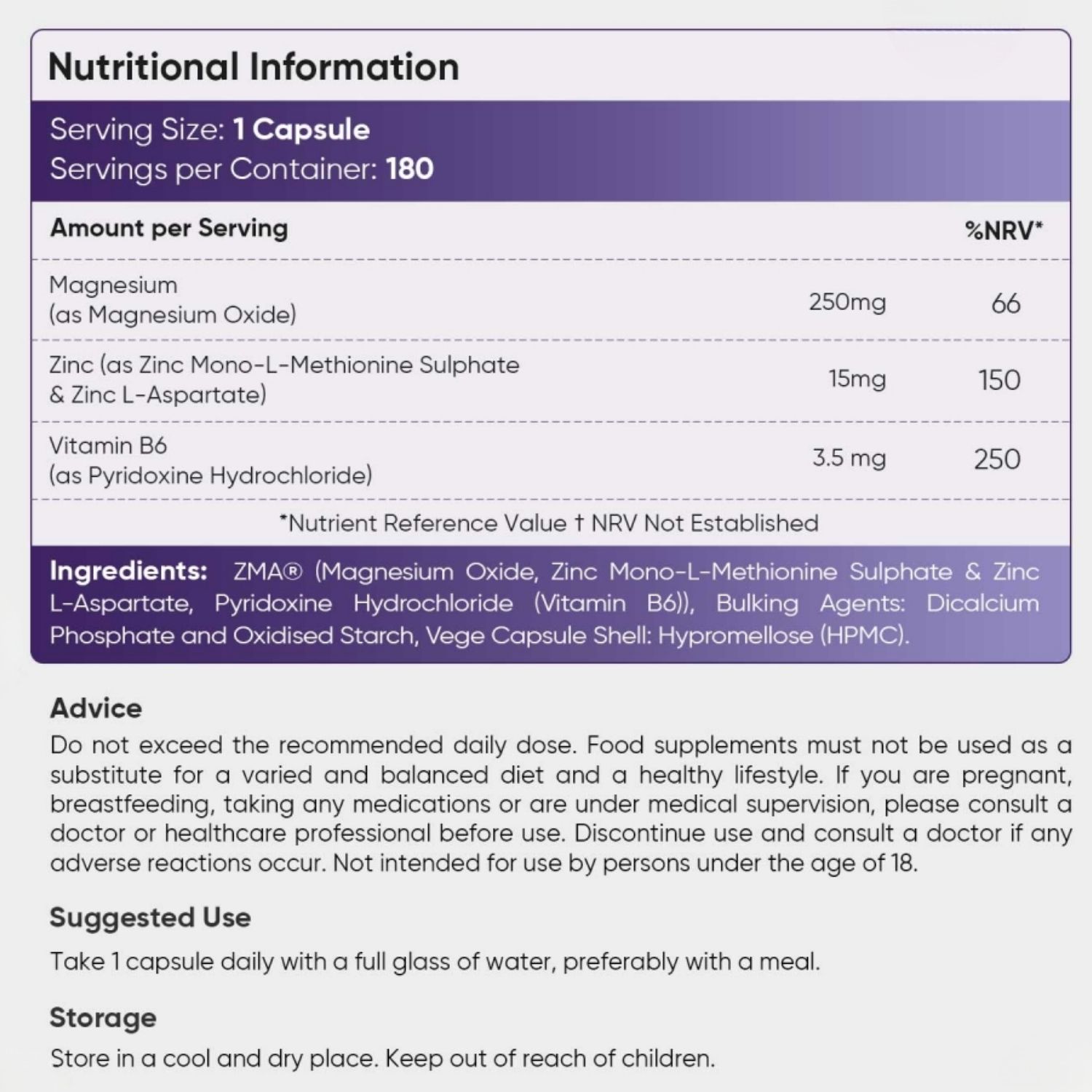 ZMA Capsules từ Weightworld là một công thức kết hợp tối ưu giữa Kẽm, Magie, Vitamin B6 hỗ trợ duy trì testosterone, thư giãn cơ bắp và giảm mệt mỏi, cải thiện chất lượng giấc ngủ.